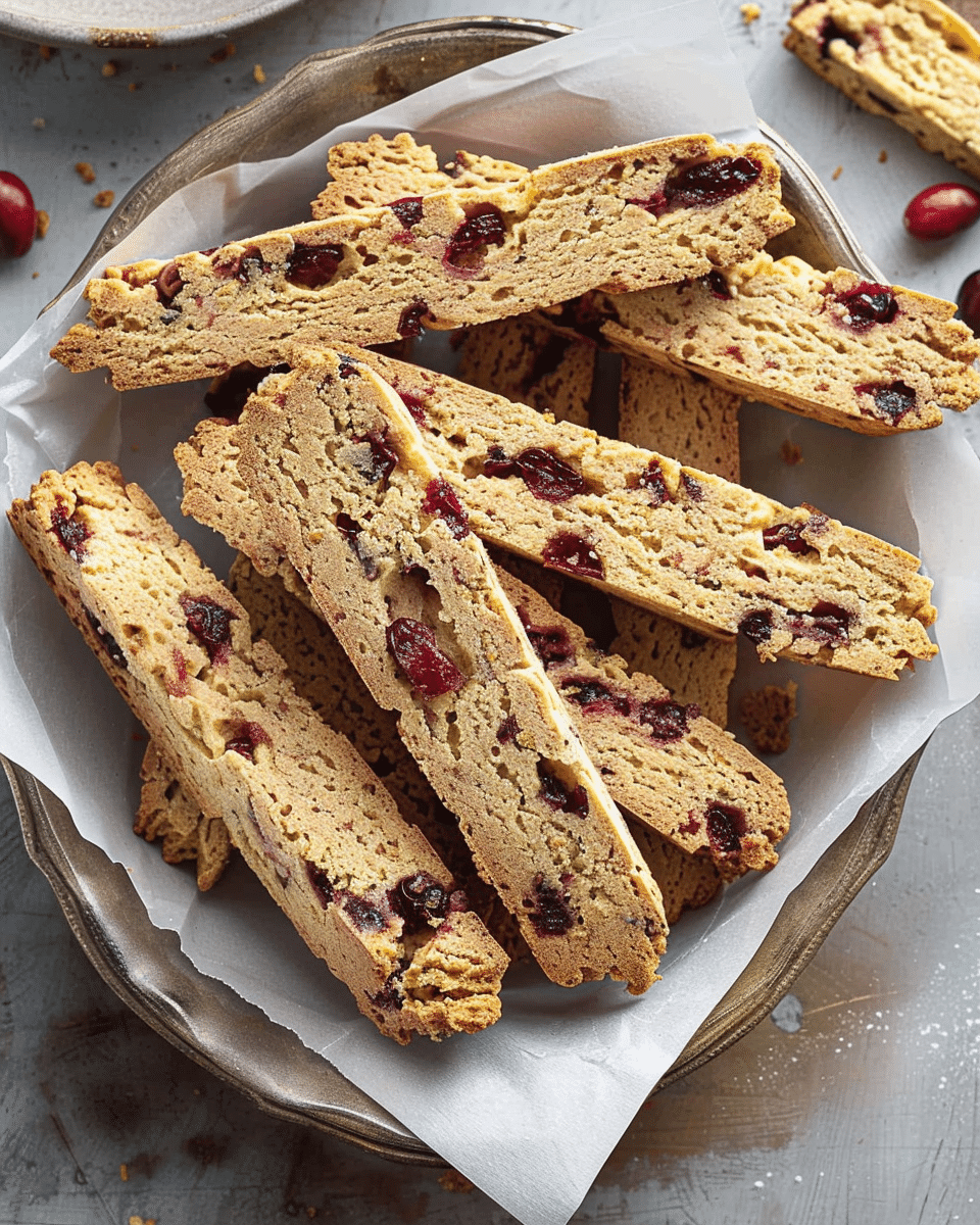 Cranberry Orange Biscotti is a crisp, twice-baked Italian cookie combining tart dried cranberries with bright citrusy orange zest, perfect for dipping in coffee or tea.