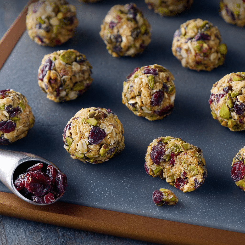 For a chocolate twist, add mini dark chocolate chips to the mixture.Swap peanut butter for cashew butter or sunflower seed butter for a different flavor profile.Add shredded coconut for extra texture and natural sweetness.Use orange zest to brighten the cranberry flavor.Replace pistachios with almonds, walnuts, or pecans if preferred.Store in an airtight container in the refrigerator for up to one week or freeze for up to three months.