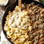 Creamy beef and shells is a rich, comforting pasta dish made with tender ground beef, medium pasta shells, and a velvety, cheesy sauce. It’s an easy, family-friendly dinner that comes together in under 30 minutes, perfect for busy weeknights.