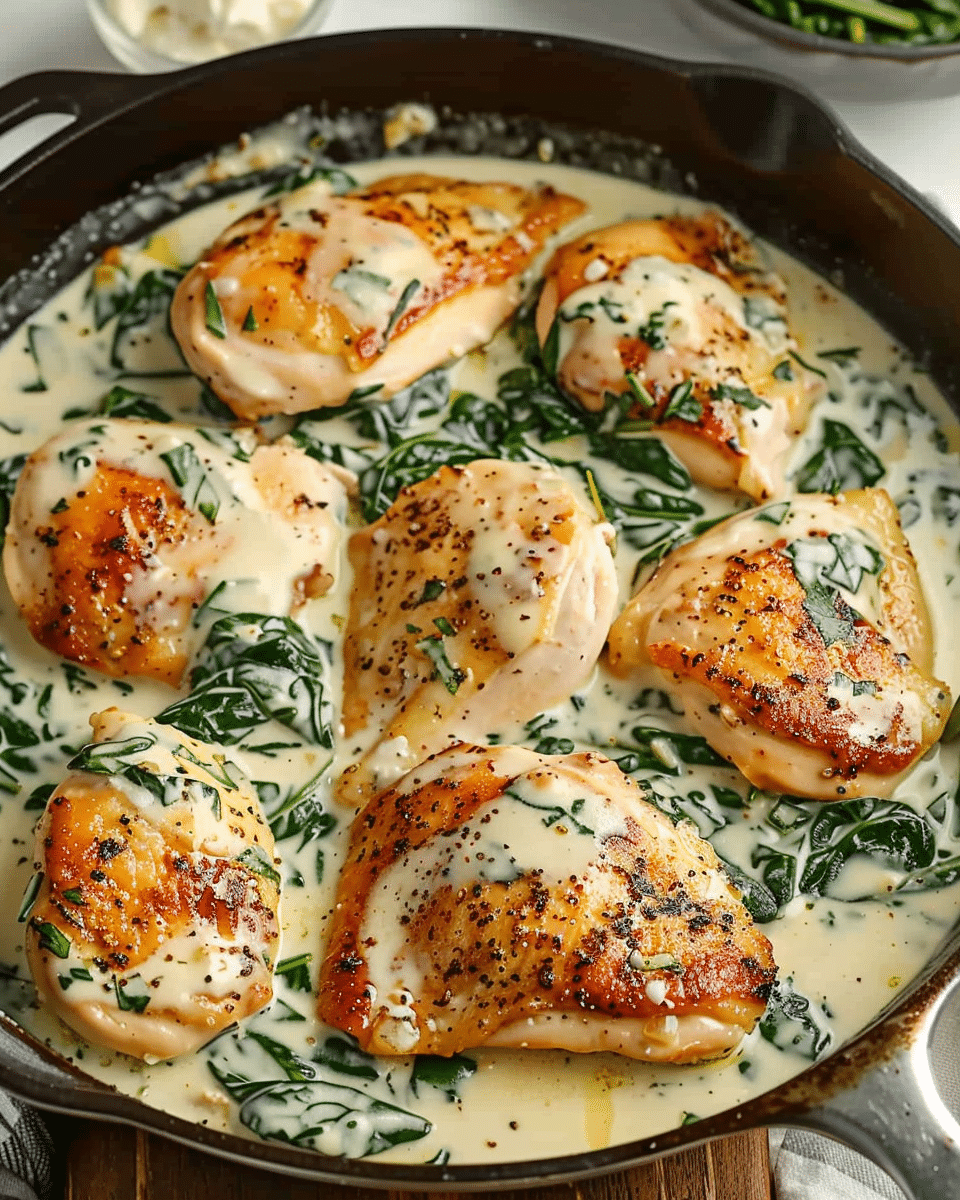 Creamy Chicken and Spinach is a quick, elegant one-pan dish featuring juicy chicken breasts in a rich Parmesan cream sauce with fresh spinach. Perfect for serving over pasta, rice, or with crusty bread, it’s both comforting and wholesome, ready in under 30 minutes.