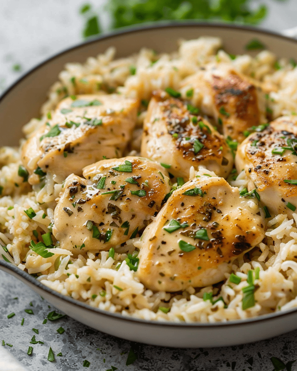 Use chicken thighs for juicier, more flavorful meat.Add mushrooms, spinach, or sun-dried tomatoes for extra texture and flavor.Substitute basmati rice with jasmine rice, couscous, or quinoa.For a lighter version, use half-and-half or Greek yogurt instead of heavy cream.Not ideal for freezing, as the cream sauce may separate.