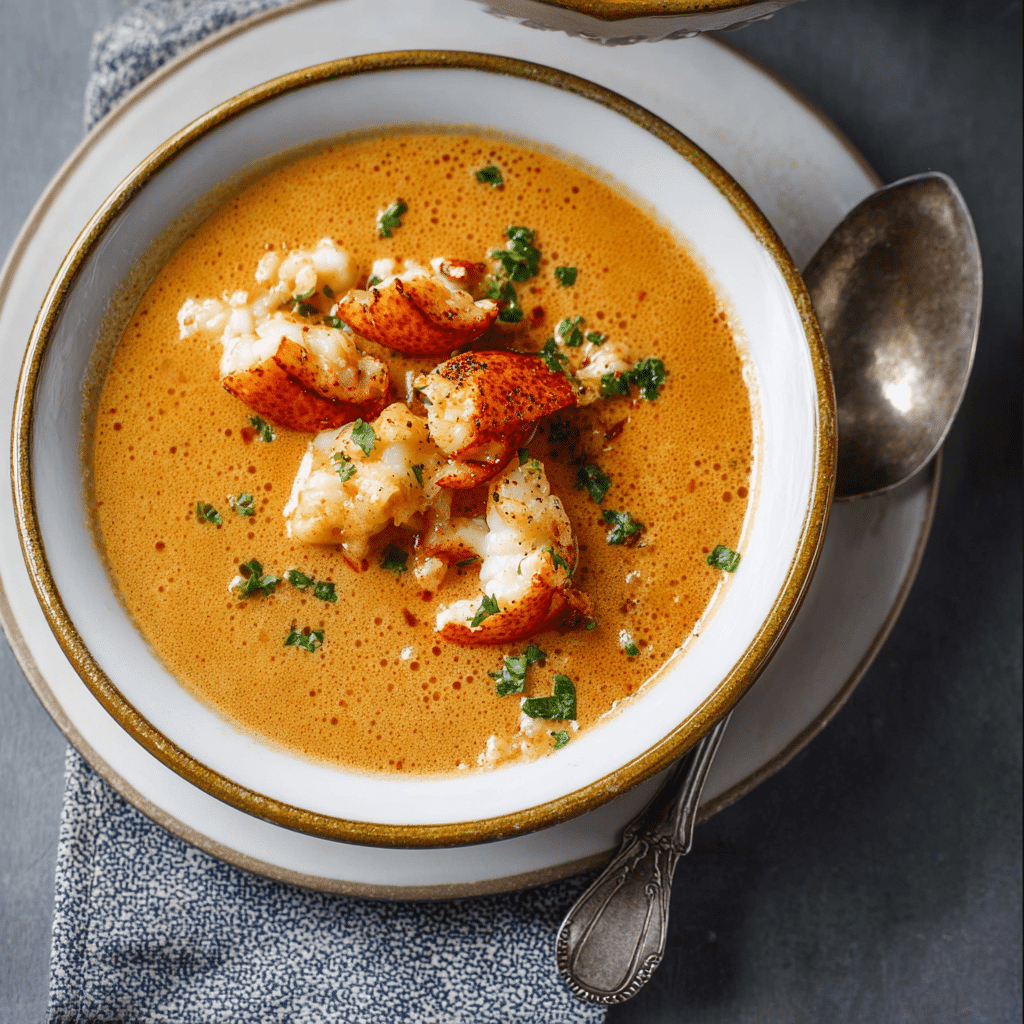 Use half-and-half instead of heavy cream for a lighter version.Stir in a small amount of butter at the end for extra richness.Add a pinch of thyme for subtle herbal notes.Top with a drizzle of cream and extra lobster pieces for an elegant presentation.Store leftovers in an airtight container in the refrigerator for up to 2 days. Reheat gently over low heat without boiling. Freezing is not recommended.