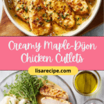 Creamy Maple-Dijon Chicken Cutlets are tender, golden-seared chicken breasts simmered in a rich maple Dijon cream sauce. This easy one-skillet chicken recipe delivers the perfect balance of sweet maple syrup and tangy Dijon mustard, creating a comforting yet elegant meal in just 30 minutes. Ideal for weeknight dinners or special occasions, this creamy maple Dijon chicken pairs beautifully with mashed potatoes, rice, or roasted vegetables.