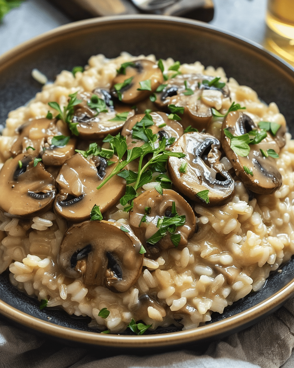 If you prefer a richer flavor, you can add more cream or butter at the end for extra creaminess.For a vegan version, replace the cream and Parmesan with plant-based alternatives like coconut cream and nutritional yeast.You can use a mix of mushrooms (e.g., shiitake, oyster, or portobello) for more complex flavors.This risotto is best served immediately, as it can become thick if left to sit too long.