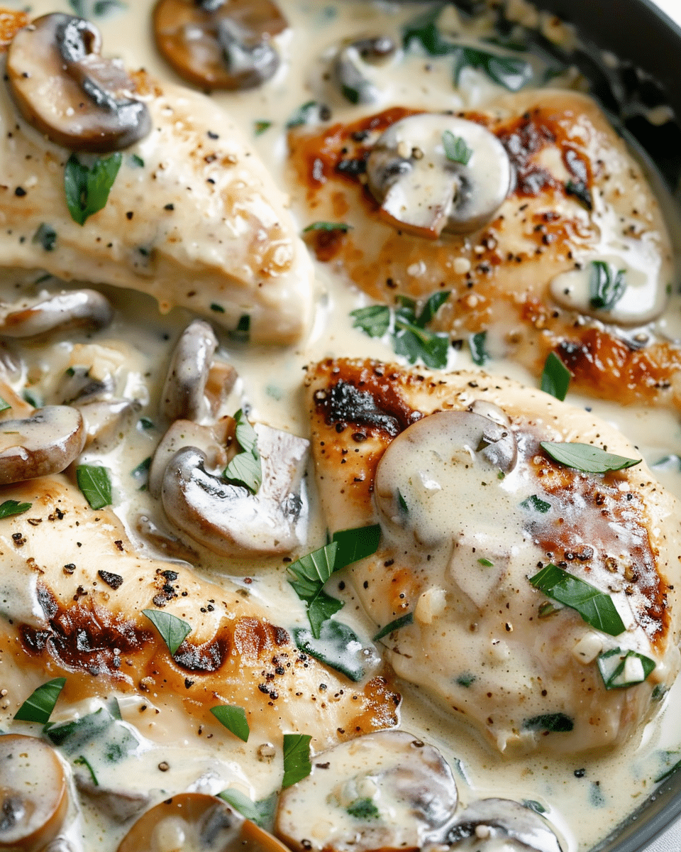 This Creamy Parmesan Garlic Mushroom Chicken is a rich, comforting skillet meal featuring tender chicken breasts smothered in a creamy garlic-Parmesan sauce with mushrooms and spinach. Ready in under 30 minutes, it’s perfect for a quick weeknight dinner that’s both flavorful and satisfying.