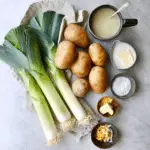 (Tip: You’ll find the full list of ingredients and measurements in the recipe card below.) potatoes (peeled and chopped) leeks (cleaned and sliced) butter olive oil garlic (minced) vegetable or chicken broth heavy cream salt black pepper fresh herbs like thyme or parsley (optional)
