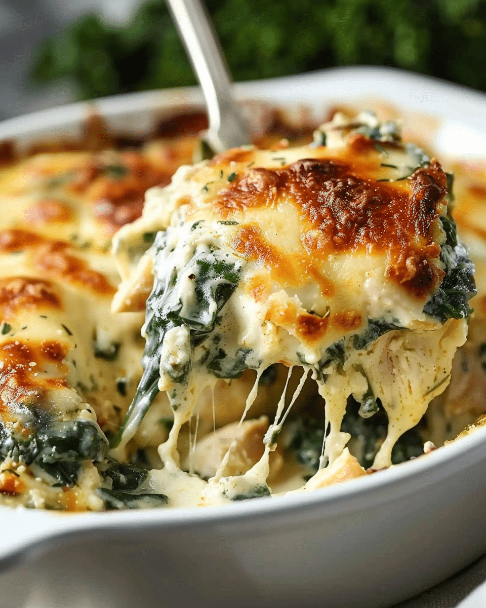 Creamy Spinach Chicken Casserole combines tender chicken breasts, vibrant spinach, and a luscious creamy sauce made with cream cheese, heavy cream, and Parmesan. It’s a comforting, easy-to-make dish perfect for family dinners or meal prep.