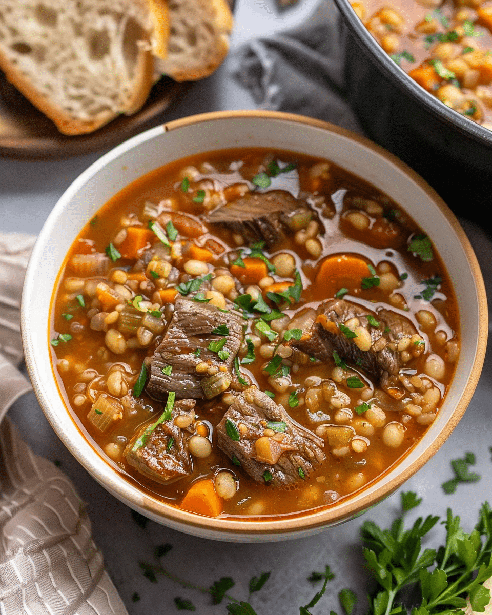 Crockpot Beef Barley Soup is a hearty, slow-cooked meal packed with tender beef, barley, and vegetables. It’s the perfect comforting soup for chilly days or easy weeknight dinners.