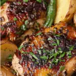 - Drizzle seasoning mixture evenly over chicken, potatoes, and green beans.