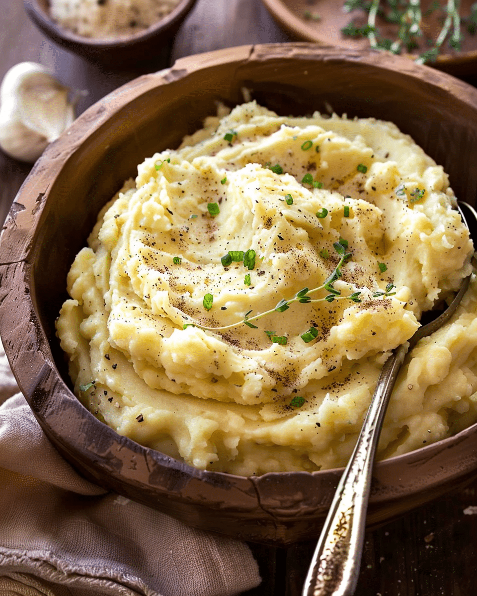 russet or Yukon gold potatoes garlic cloves (optional, for added flavor) butter heavy cream or whole milk grated Swiss cheese grated Gruyère cheese cream cheese (optional, for extra creaminess) salt black pepper fresh chives or parsley (optional, for garnish)