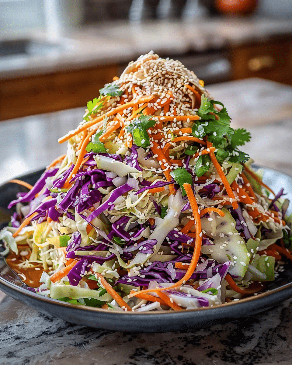 This Crunchy Asian Cabbage Slaw with Addictive Sesame is a vibrant and refreshing salad made with crisp napa cabbage, shredded carrots, and a flavorful sesame dressing. It’s the perfect combination of crunch, sweetness, and savory goodness, ideal as a side dish or light meal. Simple to make yet full of bold flavors, this slaw is perfect for any occasion.
