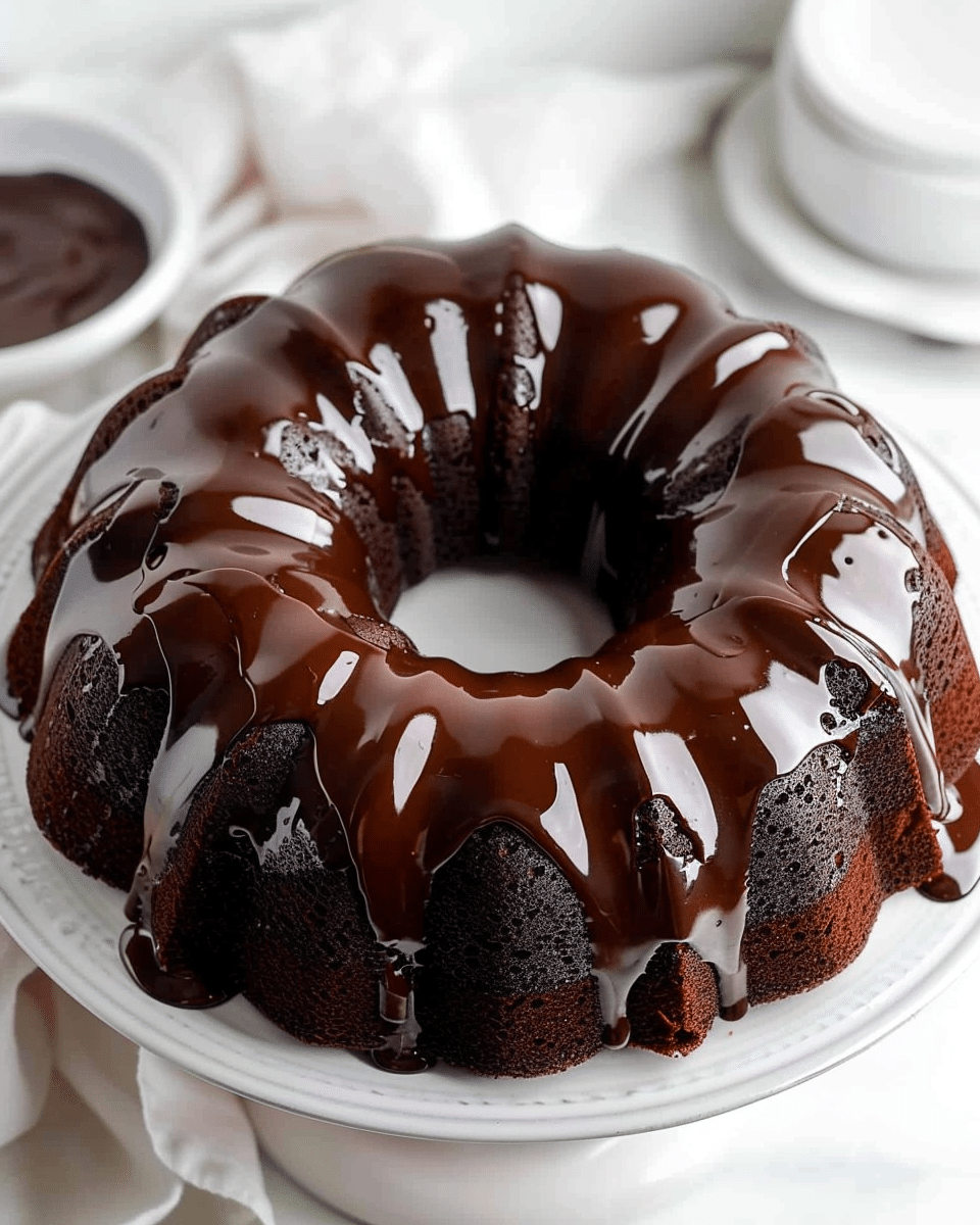 Add espresso powder to intensify chocolate flavor.Use white or milk chocolate chips for contrast.Swirl in peanut butter or jam before baking for a fun twist.For best release, grease and flour every crease of your bundt pan well.Cake is even better the next day once flavors settle.