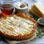This Hot Honey Goat Cheese Tart is a unique dessert featuring a creamy tangy goat cheese filling baked in a buttery flaky crust and finished with a drizzle of sweet and spicy hot honey. Perfect for dinner parties, brunch spreads, or an elegant homemade dessert, this tart balances sweet, tangy, and lightly spicy flavors beautifully.