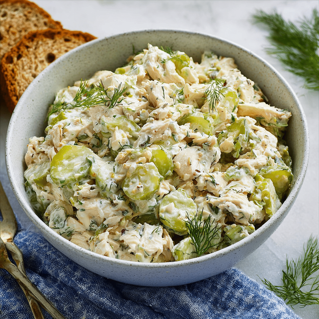 Dill Pickle Chicken Salad is a creamy, tangy, and satisfying meal option that’s easy to prepare and full of bold flavor. Whether served as a sandwich filling, a light lunch, or part of a picnic spread, it’s a versatile recipe you’ll find yourself making again and again.