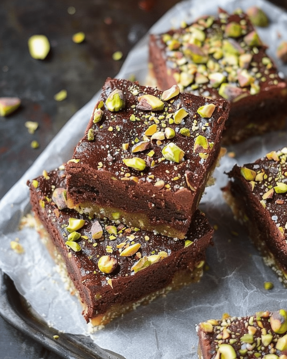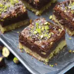 This dessert is the ultimate fusion of indulgence and refinement. The rich chocolate flavor is beautifully complemented by the subtle, buttery crunch of pistachios, creating a dynamic bite in every square. The cake is moist and dense without being heavy, while the optional ganache or syrup topping adds a glossy finish that elevates both flavor and presentation. It’s easy to make, perfect for slicing into shareable portions, and delivers a taste of Dubai’s luxurious dessert culture right at home.