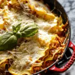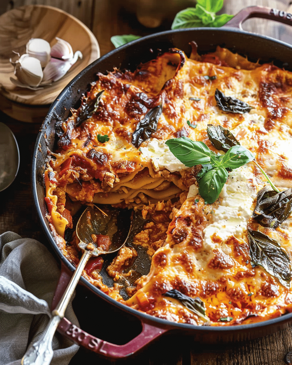 This lasagna is all about ease and flavor. Using a Dutch oven eliminates the need for multiple dishes and ensures even cooking from top to bottom. The deep pot allows for generous layers, while the heavy lid helps lock in moisture and flavor. Whether you’re cooking for a family dinner or entertaining guests, this rustic and rich lasagna delivers comfort in every bite.