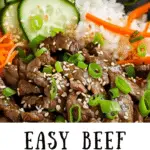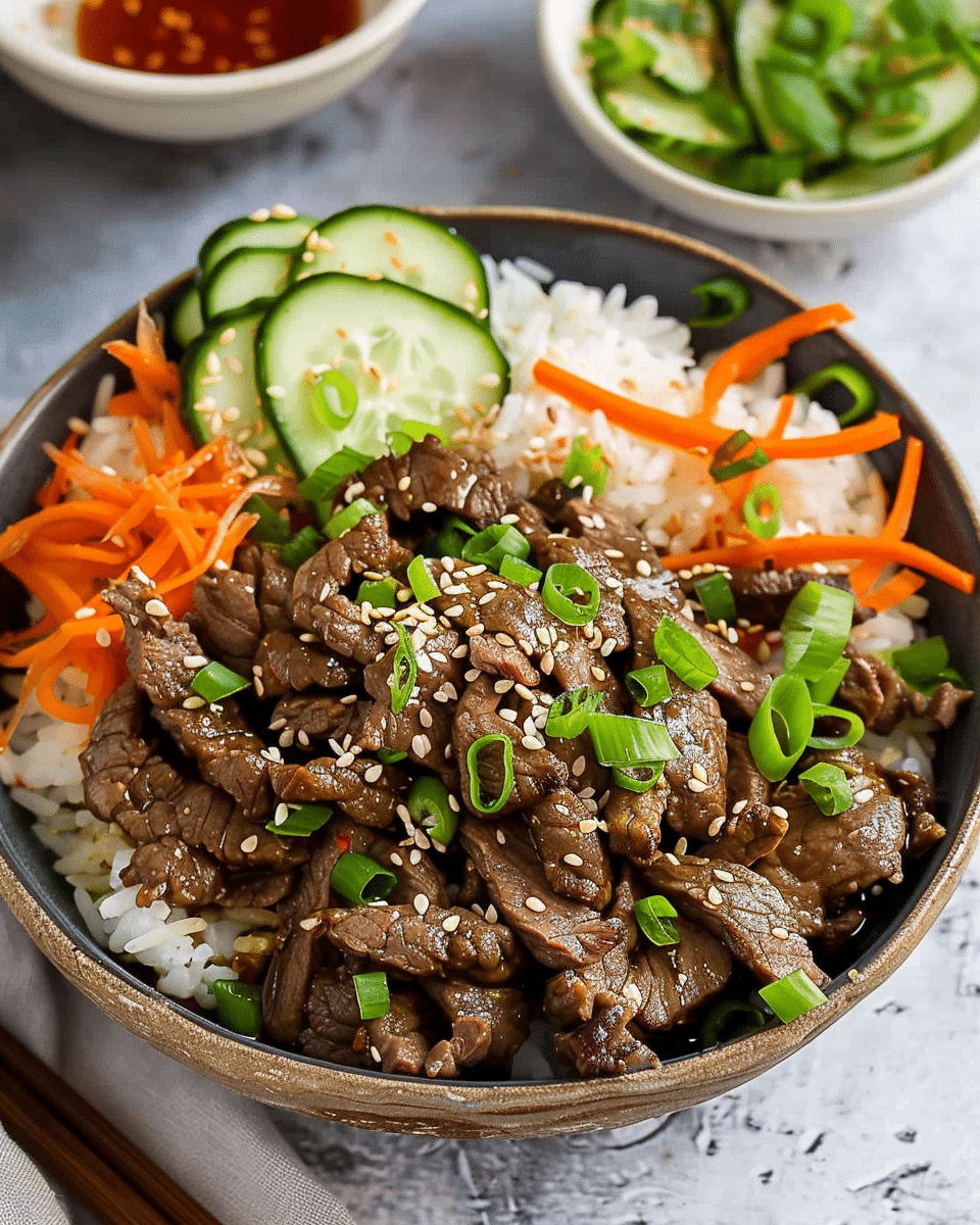 Easy Beef Bulgogi Bowls feature tender, thinly sliced beef marinated in a sweet and savory Korean-inspired sauce, stir-fried to perfection and served over rice with fresh veggies. A quick, flavorful meal perfect for busy weeknights.