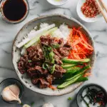 This recipe brings the beloved Korean BBQ flavor into a simple, everyday dinner format. The marinade is rich and balanced with soy sauce, sesame oil, garlic, and a touch of sweetness. With tender beef, fluffy rice, and crisp veggies, these bowls are both comforting and customizable. Plus, they come together quickly, making them perfect for busy weeknights.