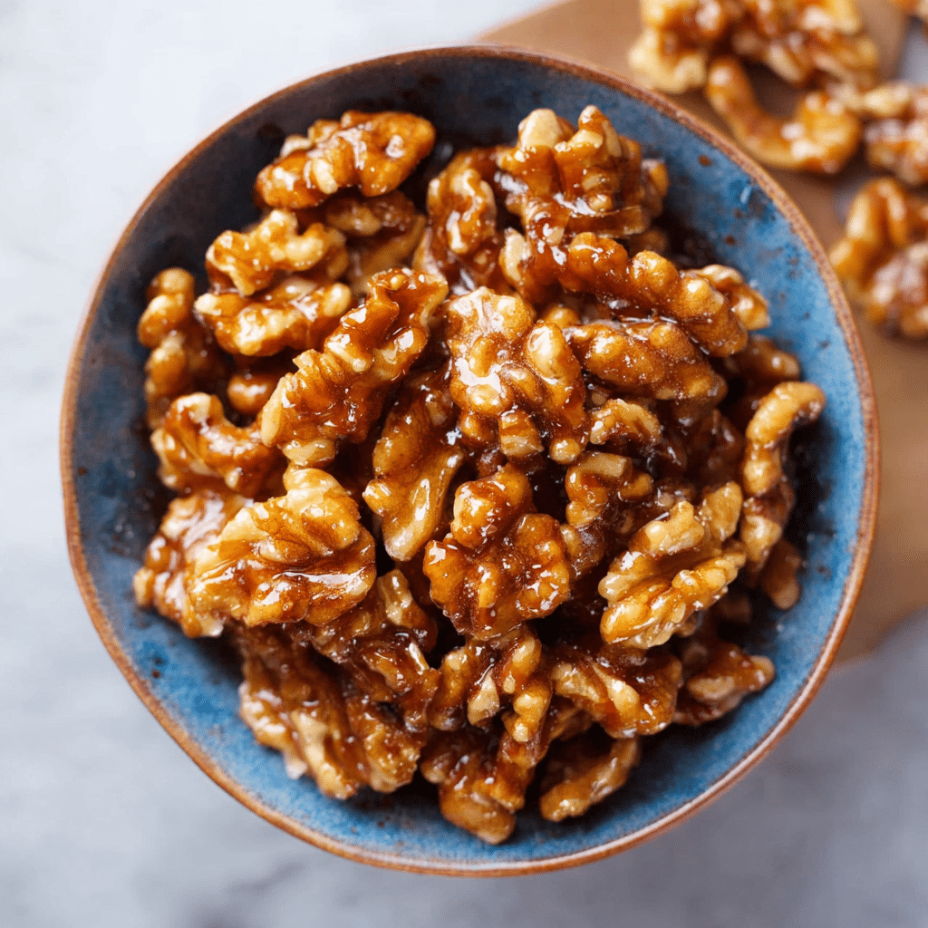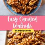 These Easy Candied Walnuts are a sweet and crunchy snack made by caramelizing walnuts with sugar and butter in just minutes. Perfect for salads, desserts, charcuterie boards, or holiday gifts, this quick candied walnuts recipe delivers a delicious balance of rich nutty flavor and crisp caramel coating.
