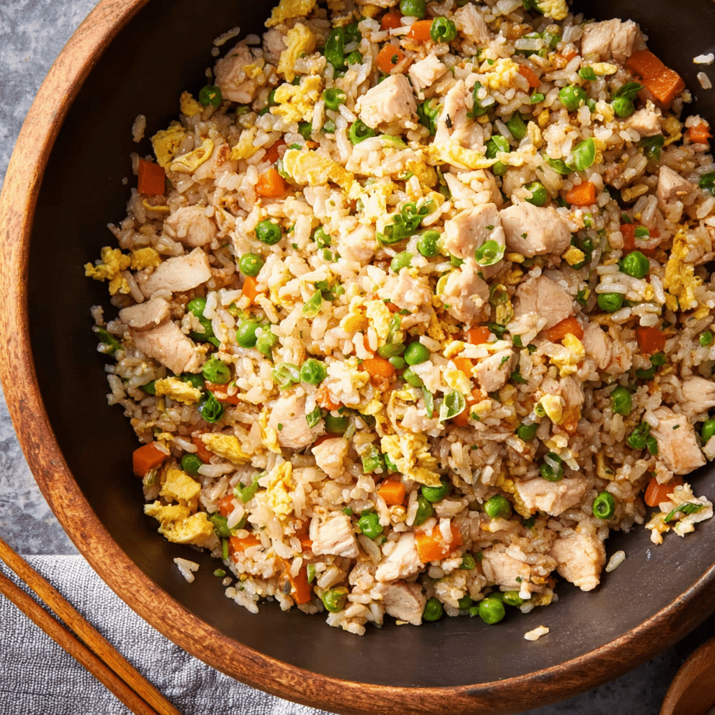 This Easy Chicken Fried Rice is a quick and flavorful one-pan meal made with tender chicken, fluffy rice, and mixed vegetables tossed in a savory sauce. Ready in under 30 minutes, this takeout-style chicken fried rice recipe is perfect for busy weeknights.