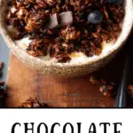 Chocolate Granola is a crunchy, chocolaty snack or breakfast made with oats, cocoa, and a touch of sweetness. Baked until crisp and finished with chocolate chips, it’s perfect over yogurt, with milk, or as a standalone snack.