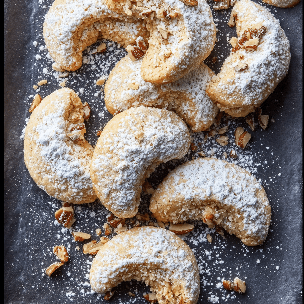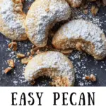 Chilling the dough for 20–30 minutes can help maintain the crescent shape if the dough becomes too soft.Finely chopping the pecans helps create a smoother cookie texture.Rolling the cookies in powdered sugar twice gives them their traditional snowy appearance.Avoid overbaking to keep the cookies soft and tender.