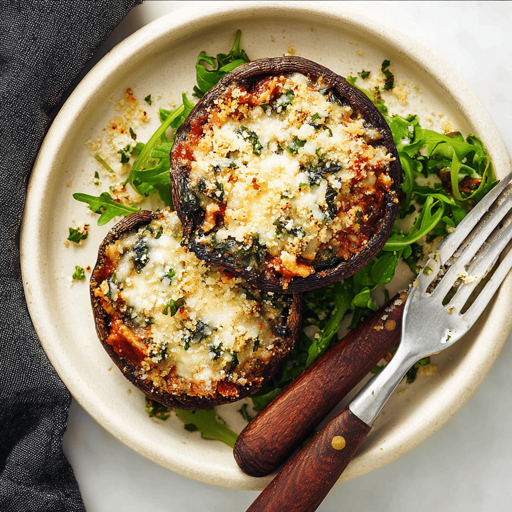 You can add sliced cherry tomatoes or spinach under the sauce for extra vegetables. For more protein, layer cooked lentils or white beans on the mushrooms before adding the sauce. Use panko breadcrumbs for extra crunch or swap mozzarella for provolone for a deeper flavor.
