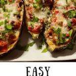 This easy stuffed eggplant recipe features tender roasted eggplants filled with a savory mixture of meat, tomatoes, and herbs, then topped with melted cheese. A wholesome and flavorful Mediterranean-inspired dish perfect for a healthy dinner or hearty side.