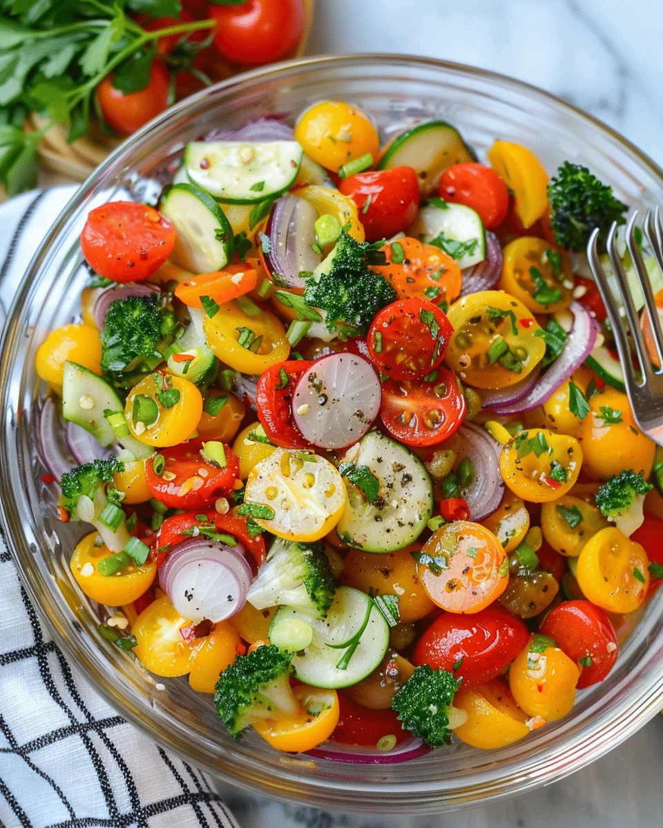 This Easy to Make Marinated Vegetable Salad features a vibrant mix of fresh, crisp vegetables soaked in a tangy, flavorful marinade. It’s a healthy and refreshing side dish perfect for barbecues, picnics, or weeknight meals.