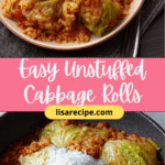 These Easy Unstuffed Cabbage Rolls deliver all the comforting flavors of classic stuffed cabbage rolls without the extra work. Tender cabbage, seasoned ground beef, rice, and rich tomato sauce simmer together in one hearty skillet meal. This simple one-pot cabbage roll recipe is perfect for busy weeknights, meal prep, and freezer-friendly family dinners.