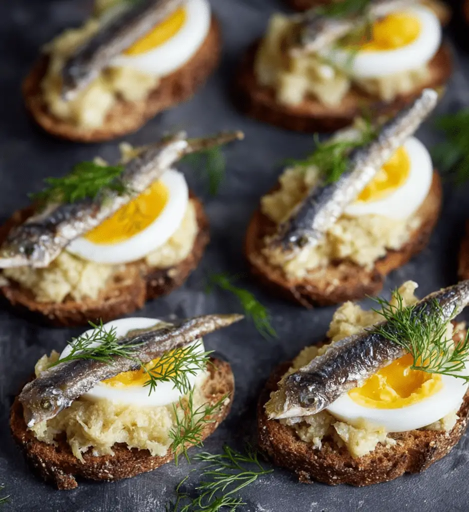 Egg and Sprats Canapés are a simple yet refined appetizer that combines creamy eggs with flavorful sprats for a perfectly balanced bite. Easy to prepare and elegant to serve, they’re an excellent choice for gatherings, holidays, or whenever you want to offer guests a savory, sophisticated snack.