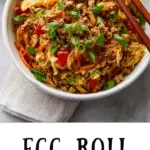 It’s inspired by the flavors of a traditional egg roll — ginger, garlic, cabbage, and sauce — served “in a bowl” without the wrapper.