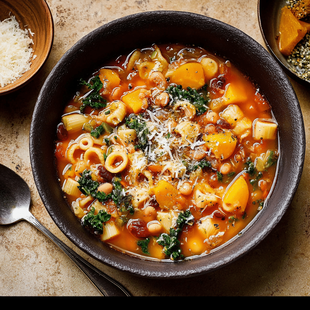 For a heartier version, add cooked Italian sausage or shredded chicken.To keep it vegan, use vegetable broth and omit Parmesan or use a plant-based alternative.Substitute sweet potatoes for butternut squash if preferred.For gluten-free, use gluten-free pasta or replace pasta with cooked rice or quinoa.For a thicker texture, blend 1 cup of soup and stir it back into the pot.