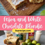 A soft and buttery Feijoa and White Chocolate Blondie packed with creamy white chocolate and tangy feijoa fruit. This easy one-bowl blondie recipe delivers a perfectly balanced, rich, and slightly tart dessert ideal for afternoon tea or simple homemade treats.