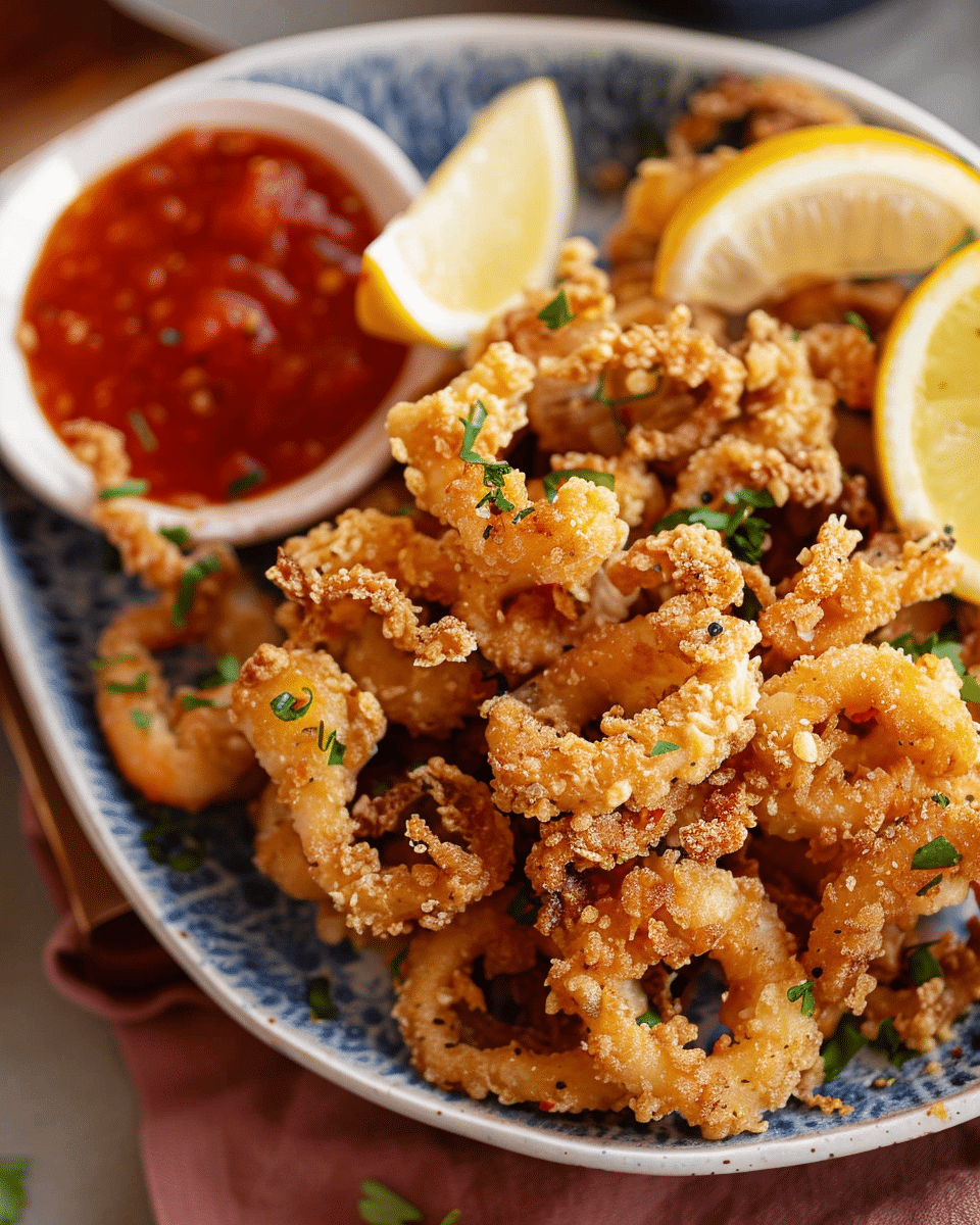 Fried Calamari is a crispy and flavorful seafood appetizer made with tender squid rings coated in seasoned flour and quickly fried until golden brown. Perfect for dipping in marinara or aioli, it’s a restaurant favorite you can easily recreate at home.
