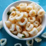 Dredge the squid rings in the flour mixture, ensuring they’re well coated.