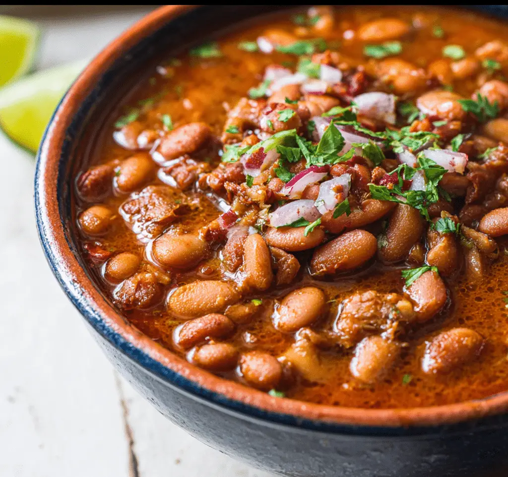 Frijoles Charros are hearty Mexican-style pinto beans simmered in a savory, spiced tomato broth with onion, garlic, peppers, and fresh cilantro—comforting, flavorful, and perfect for sharing.