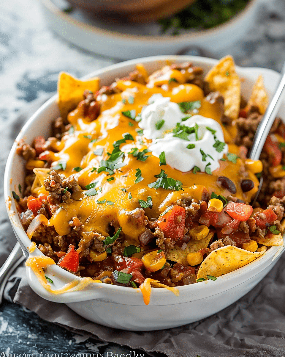 Frito Pie is a nostalgic comfort food made by layering crunchy Fritos corn chips, hearty homemade chili, and melted cheese for the ultimate crowd-pleasing dish. Perfect for game nights, potlucks, or casual family dinners, it’s quick to prepare and endlessly customizable.