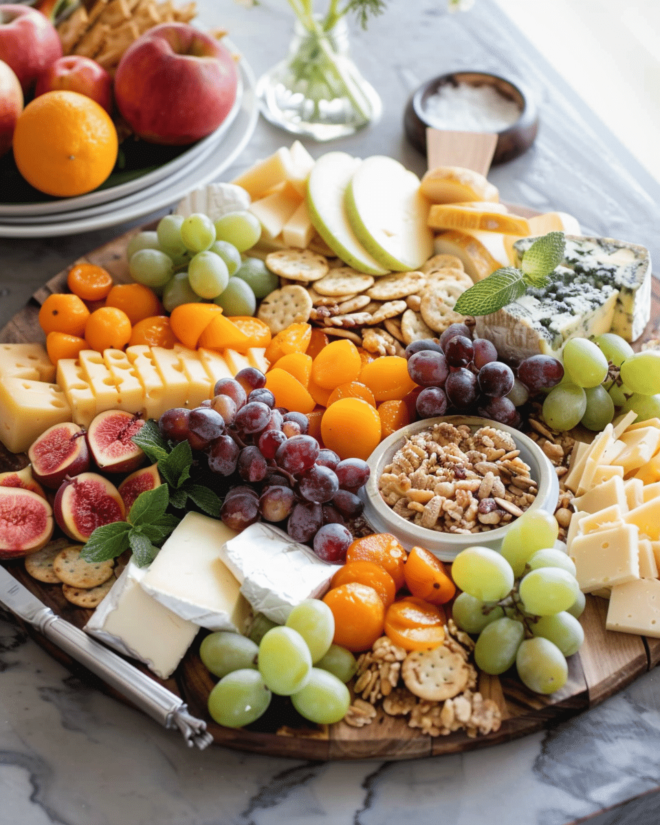 Use seasonal fruits for freshness and visual variety.Add chocolate or sweet treats for dessert-style platters.Make it themed—such as Mediterranean or French—with specific cheeses and accompaniments.Allow cheese to come to room temperature before serving for best flavor.Store components separately if preparing ahead.