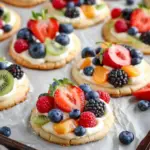Fruit Pizza Cookies are mini sugar cookie desserts topped with a tangy cream cheese frosting and colorful fresh fruit. They’re fun, refreshing, and perfect for parties, holidays, or any time you want a sweet and fruity treat.