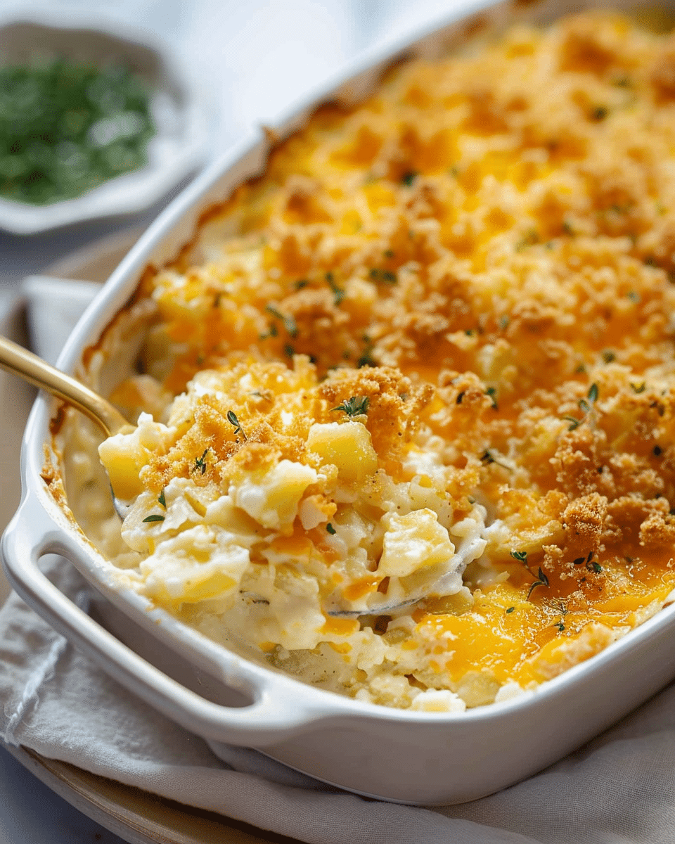 Funeral Potatoes are a cheesy, creamy hash brown casserole topped with a buttery, crunchy topping—perfect for potlucks, holidays, or family dinners. This comforting, crowd-pleasing dish is easy to make and always a hit.