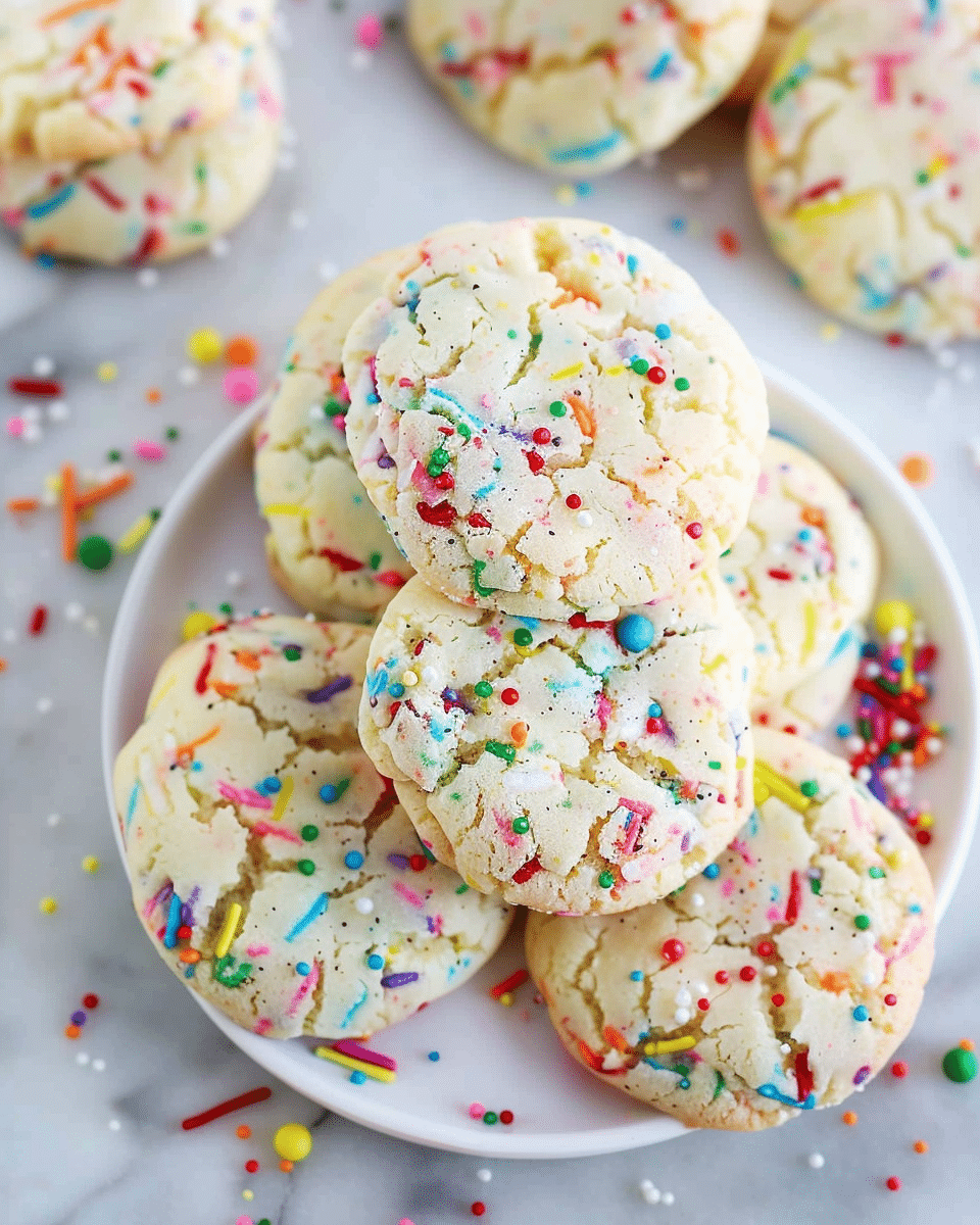 Funfetti Cake Mix Cookies are a quick, colorful, and delicious dessert that’s perfect for any occasion. With minimal ingredients and a short prep time, these cookies are a go-to recipe when you want something sweet, fun, and easy. Keep a box of cake mix on hand—you’ll want to make these again and again.