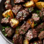 Garlic butter steak bites and potatoes is a hearty, one-pan dish featuring tender steak, crispy golden potatoes, and a rich garlic butter sauce. It’s a quick, flavorful dinner perfect for any night of the week.