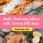 Garlic Rosemary Salmon with Creamy Dill Sauce is a flavorful and elegant dish featuring tender salmon infused with garlic and rosemary, paired with a tangy, herbaceous dill sauce. It’s perfect for both weeknight dinners and special occasions.