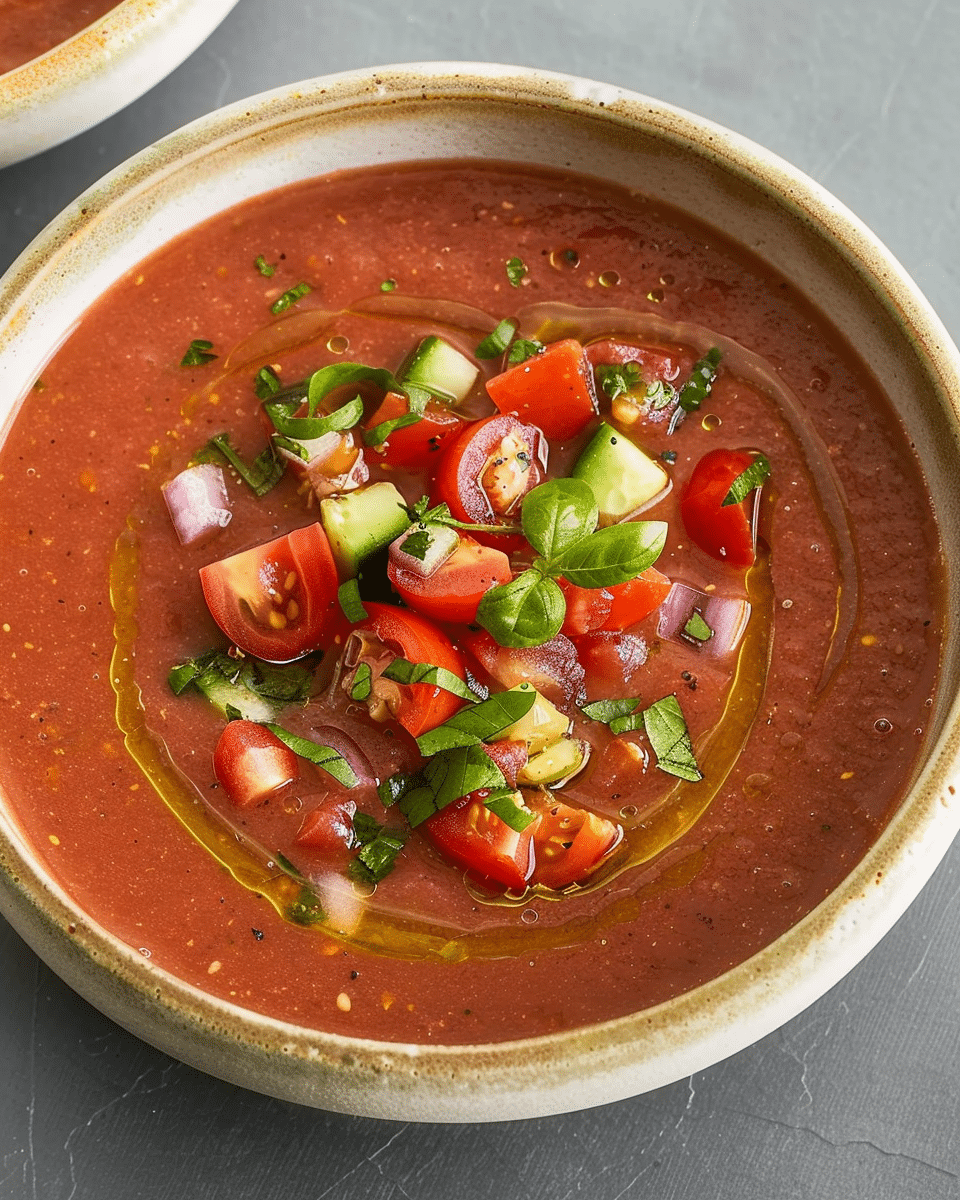 Gazpacho Andaluz is a traditional summer favorite that brings together simple, wholesome ingredients in a deliciously cool and refreshing way. With no cooking required and endless room for customization, it’s a must-have recipe for hot weather and fresh seasonal produce. Serve it chilled and enjoy a taste of Spain in every spoonful.