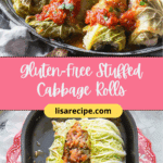 Gluten-free stuffed cabbage rolls are a hearty and comforting dish made with tender cabbage leaves wrapped around a savory mixture of meat, rice, and spices, all simmered in a rich tomato sauce. Naturally gluten-free and perfect for family meals or meal prep.