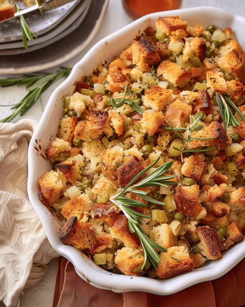 You can stuff the turkey with this stuffing, but ensure that the stuffing reaches an internal temperature of 165°F (74°C) for food safety. If you’re stuffing the turkey, make sure not to pack it too tightly to allow for even cooking.