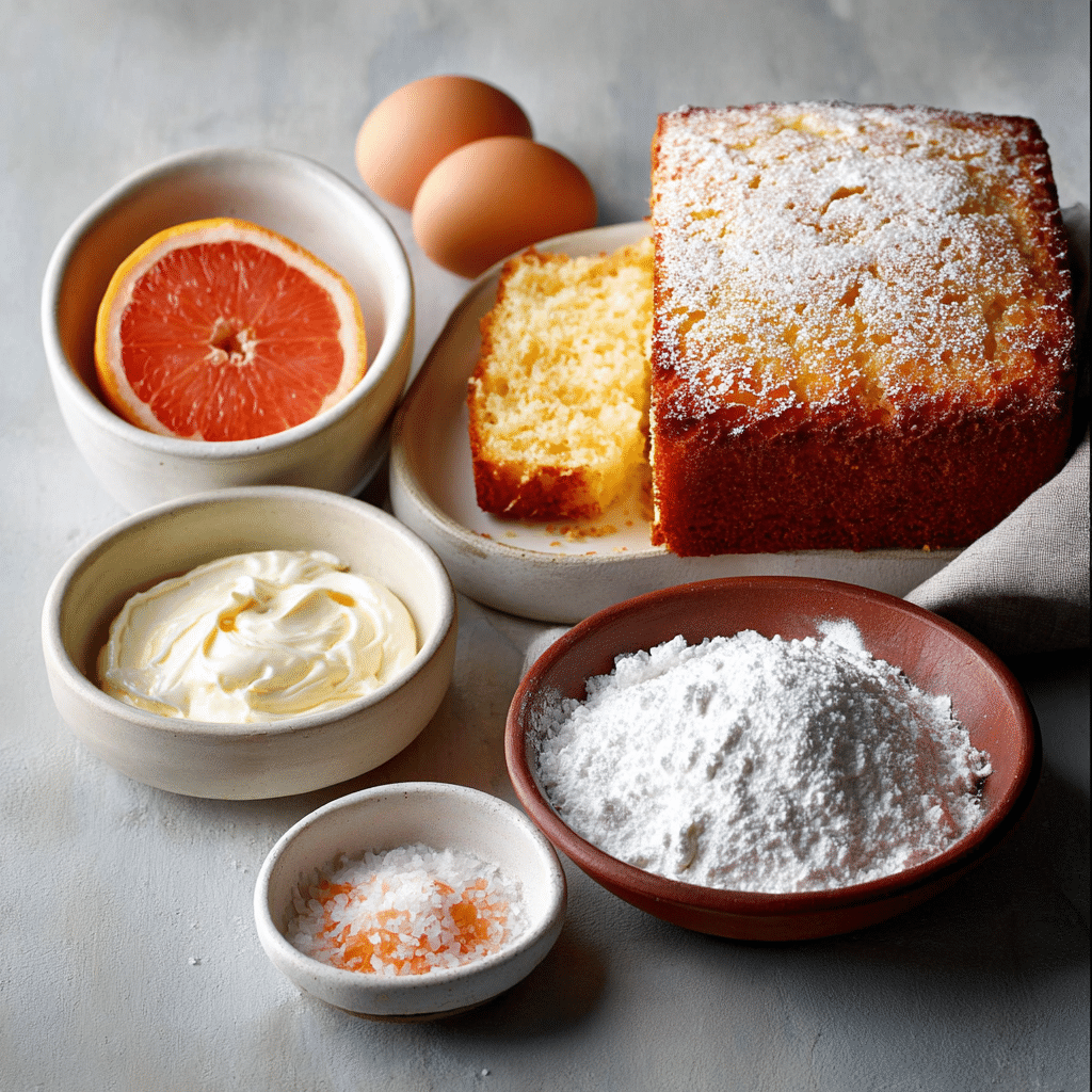 This cake stands out thanks to its vibrant citrus flavor. Grapefruit adds a fresh, slightly tangy note that feels light yet distinctive, making it a wonderful alternative to traditional lemon or orange cakes.