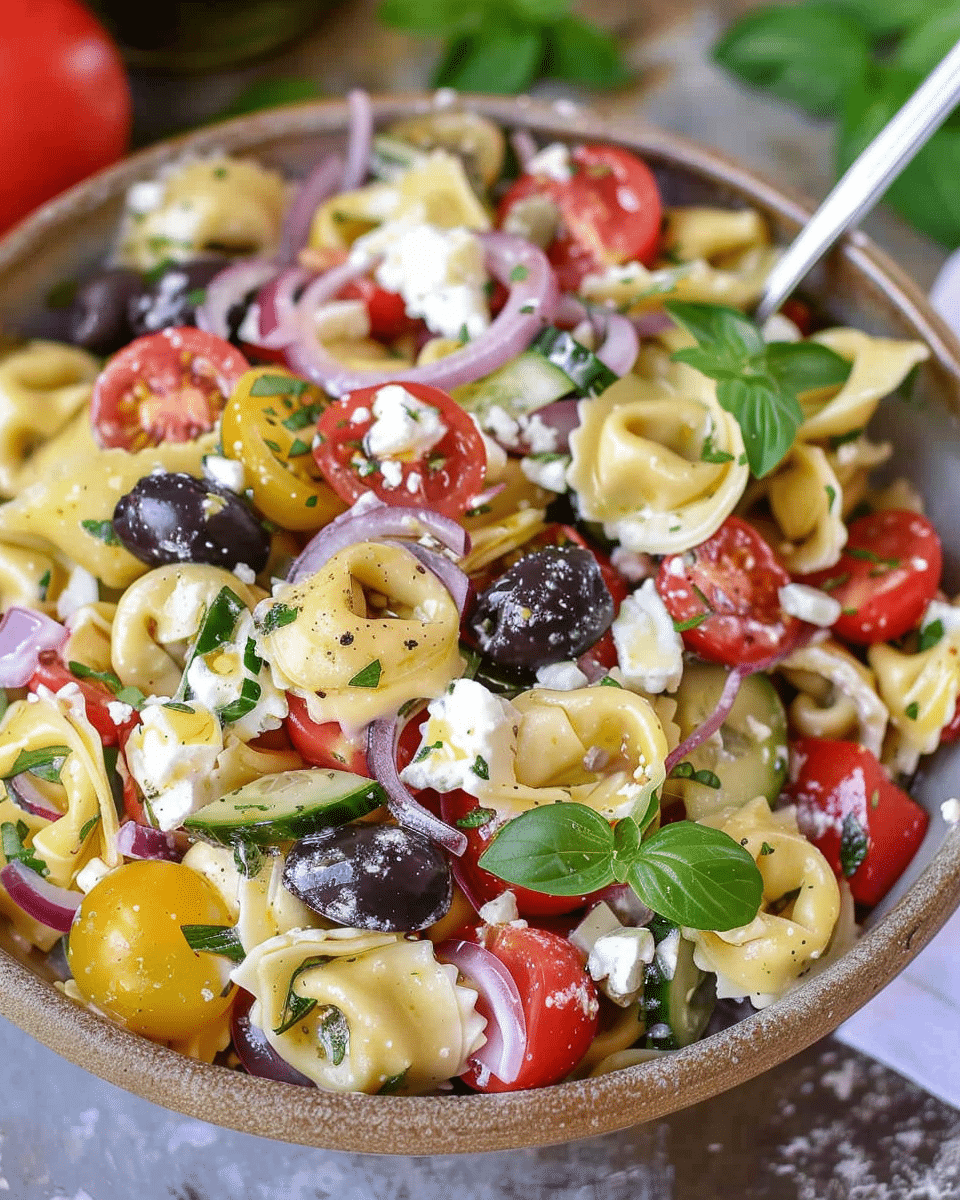 Greek Tortellini Salad is a fresh, flavorful, and filling twist on traditional pasta salad. With cheesy tortellini, crisp vegetables, tangy feta, and a zesty vinaigrette, it’s a simple dish that delivers big on taste. Perfect for warm-weather meals, gatherings, or easy lunches, it’s a recipe you’ll turn to again and again for delicious, no-fuss Mediterranean flavor.