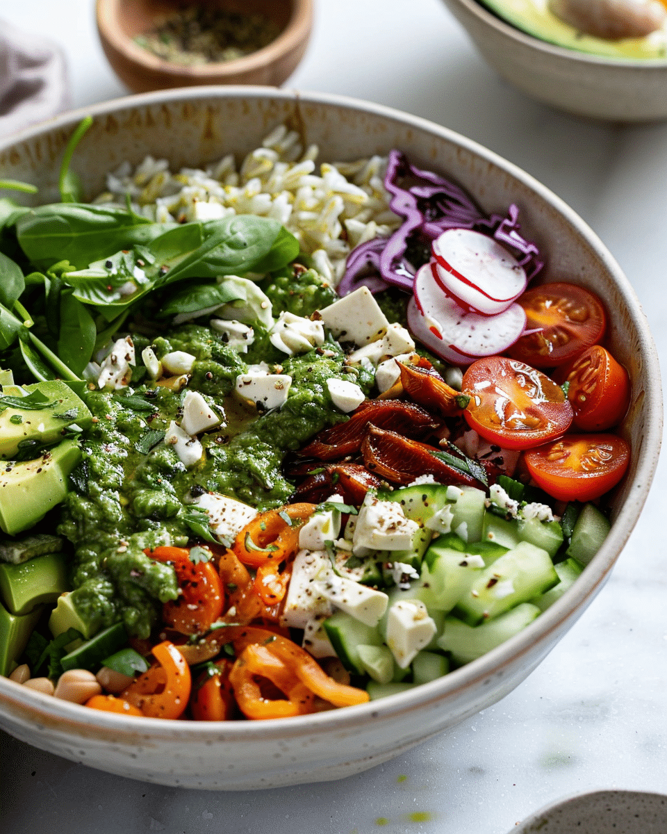These bowls are a celebration of all things green and fresh. They’re loaded with fiber, healthy fats, and plant-based protein, making them both filling and energizing. The real star is the Green Goddess dressing—tangy, creamy, and full of fresh herbs like basil, parsley, and chives. Whether you’re vegan, vegetarian, or just looking for a nutritious and delicious meal, this recipe fits the bill.